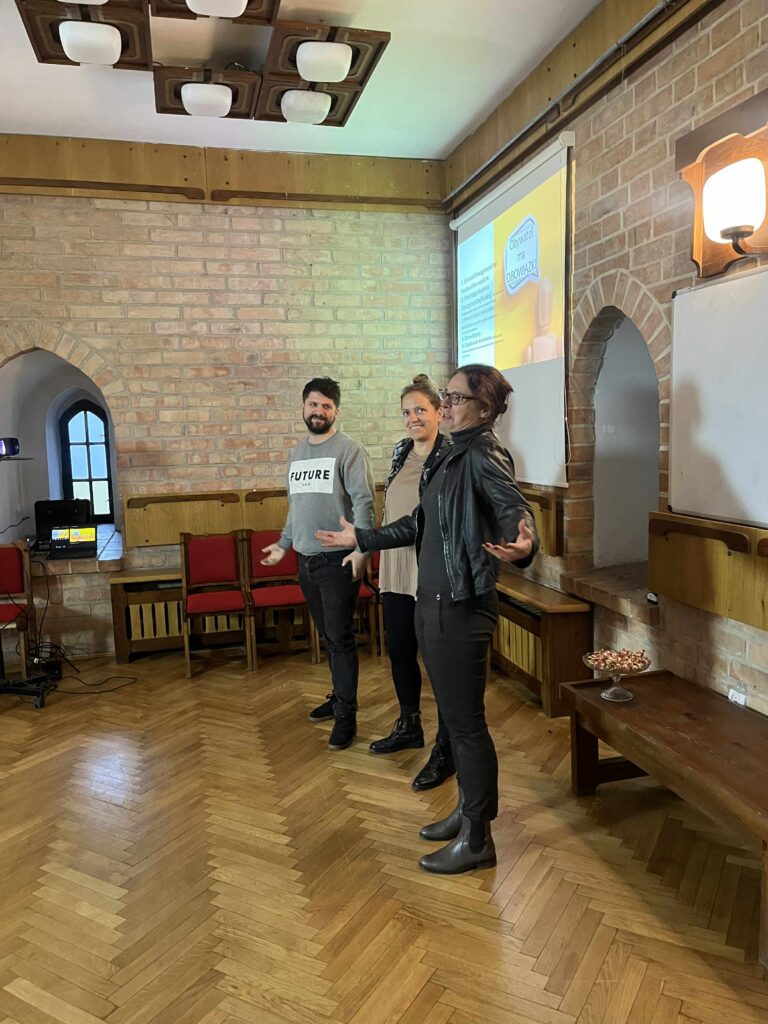 Wydarzenie rozpoczęło się krótkim powitaniem i wprowadzeniem do idei łączenia treści merytorycznych z elementami humoru. Następnie uczestnicy wzięli udział w naprzemiennych segmentach: krótkich, przystępnych wystąpieniach oraz lekkich interludiach rozrywkowych przygotowanych przez SzaFoFe. Były ćwiczenia angażujące publiczność, pytania do dyskusji i momenty pełne śmiechu, które rozluźniały atmosferę i sprzyjały aktywnemu udziałowi.
