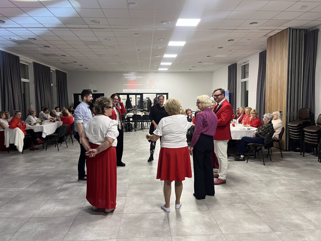 Przestrzeń naszych spotkań otworzyła się na dialog, śmiech i praktyczne działania. W atmosferze improwizowanych scenek, kreatywnych ćwiczeń i wspólnego żartu – uczestnicy warsztatów poznawali prawa obywatelskie oraz tajniki skutecznej komunikacji (jakże potrzebne we współpracy nie tylko z lokalnymi samorządami). Liczne badania naukowe potwierdzają, że humor dynamizuje komunikację, pobudza motywację poznawczą, redukuje stres i angażuje emocje. Śmiech uruchamia system nagrody w mózgu, ułatwiając zapamiętywanie oraz budując trwałe, pozytywne relacje w grupie. Takie podejście wzmacnia poczucie bezpieczeństwa, otwartości i kreatywności, a także sprzyja integracji międzypokoleniowej.Wierzymy, że edukacja przez śmiech to nie tylko skuteczniejszy, ale też przyjemniejszy sposób zdobywania wiedzy obywatelskiej.